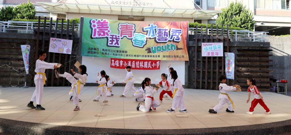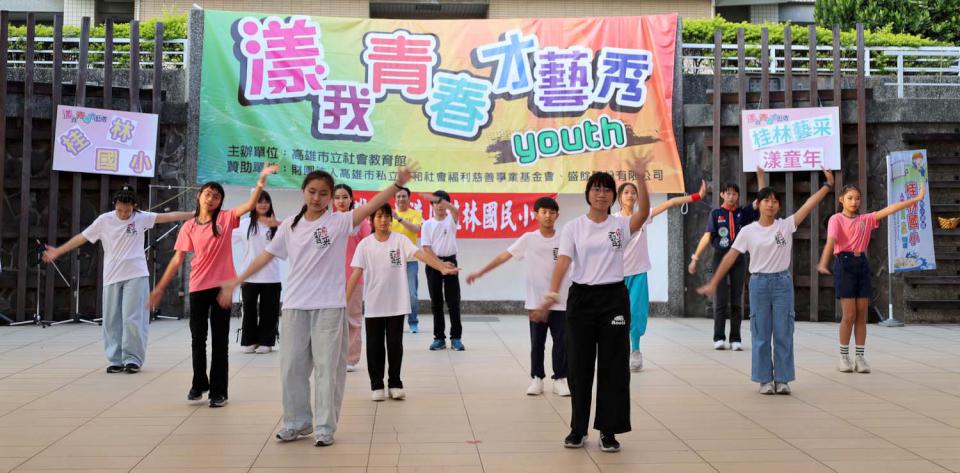 高市社教館1月18日舉行「漾我青春才藝秀~桂林藝采漾童年」成果展演,小港區桂林國小教師王廷元領軍太鼓隊、熱舞社、拉丁舞社、提琴班、弦樂團、直笛團、跆拳道、童軍團、學生自治團、教師團、家長會團等輪流登台獻藝,桂林國小王廷元等教師團隊、家長會長劉育志領軍熱血家長特攻隊也加入助陣,過程穿插有獎問答與驚喜摸彩,桂林國小校長蕭淑美感謝社教館提供舞台,社教館感謝高市私立康和社會福利慈善事業基金會及盛餘贊助支持,更多活動訊息可上社教館官網及官方社群查詢。圖/社教館提供、文/高培德