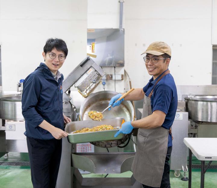 高市青年局力推競爭型青創補助,支持具規模青年創業者拓展市場,114年獲補助豐城機械創意推廣食品加工設備,炒飯餐車巡迴演示自研加熱式攪拌機,青年局長林楷軒(圖一左)說,競爭型青創補助設定申請門檻,精準導入資源助攻青創業者拓展市場。