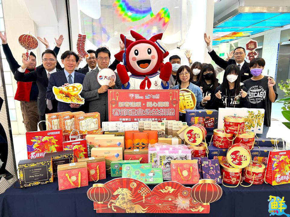 ▲高雄大遠百攜手衛生福利部南區老人之家舉行「新春送暖.愛心滿載」春節禮盒公益捐贈活動。