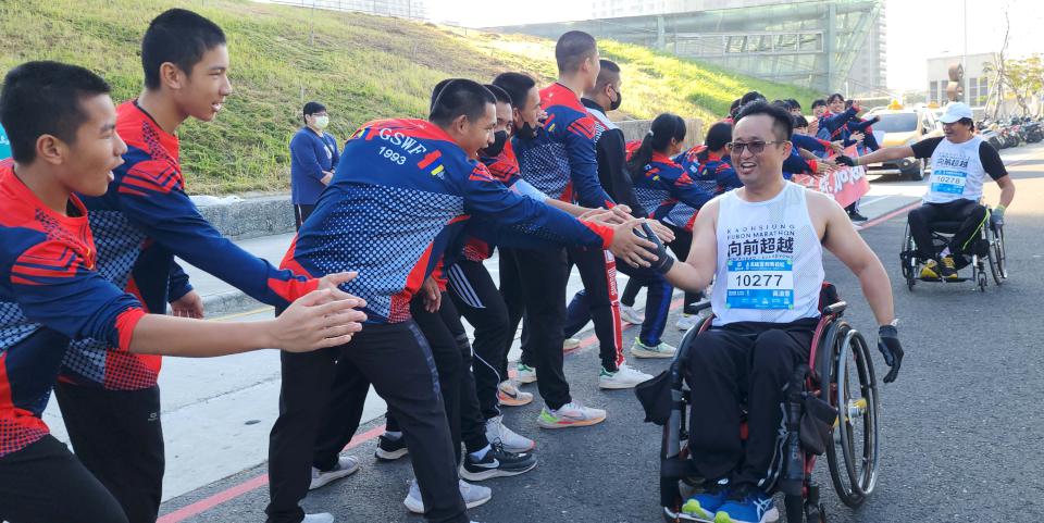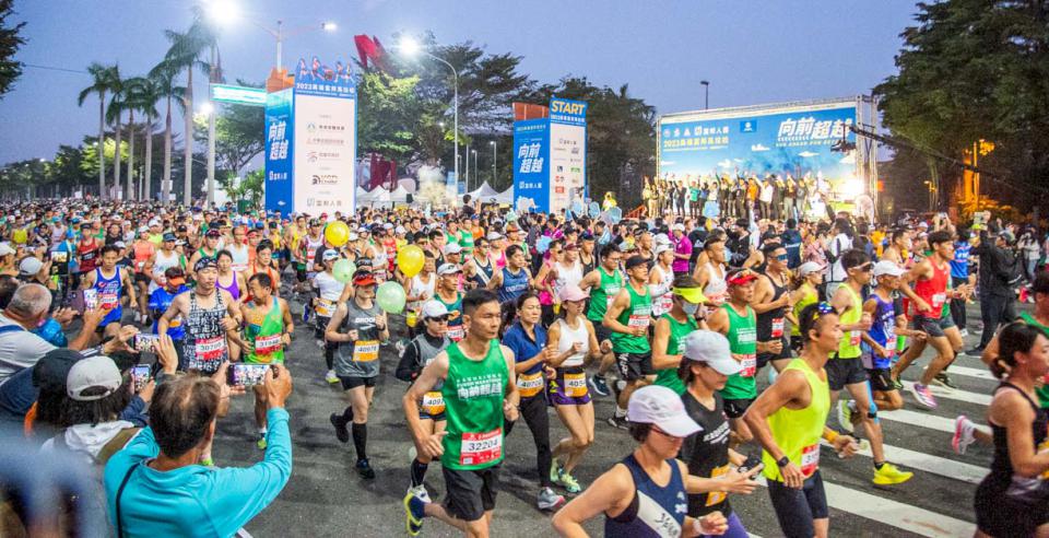 沿線楠梓、橋頭、岡山、彌陀、梓官等區宮廟、學校、社區媽媽加油團、宋江陣、鑼鼓陣、皮影戲偶等熱情應援,1月11日上午5點至8點30分高市運動發展局等指定平台全程直播,參賽選手可上網(https://reurl.cc/3bpkkL)下載手冊,查詢報到指南、賽道地圖、交通管制、交管等資訊,詳情可上運發局、高富馬官網及官方社群查詢。圖/運發局提供、文/高培德