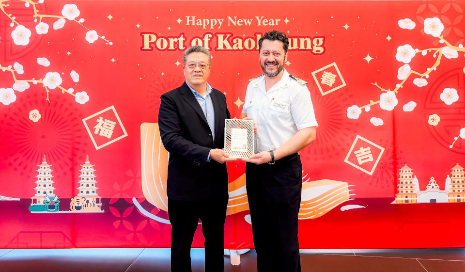 銀海郵輪銀海明月號(SILVER MOON )3月11日搭載533名美洲及歐洲旅客停泊高雄港,成為115年第4艘訪高國際郵輪,臺灣高雄港務噴水儀式並結合海洋局安排原住民舞蹈迎賓,也安排旅客體驗春聯臨摹並帶回成品留念,港務長陳祖强(圖一左)致贈船長首航紀念牌,預計停留一天後航向韓國。
