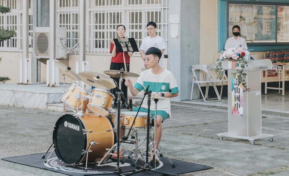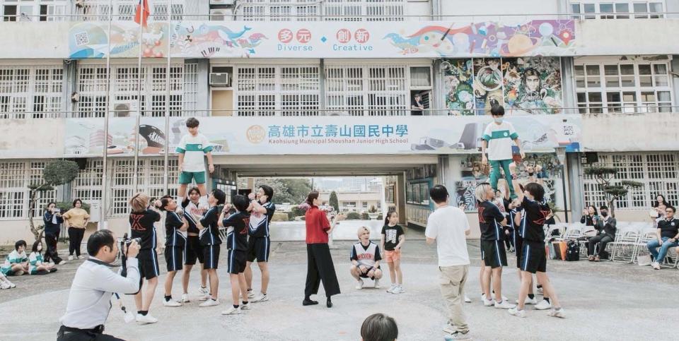 東京都立大學啦啦隊精彩演出展現熱情活力,啦啦隊員也引導壽山國中及壽山國小學生體驗肢體律動,壽山國中學生演奏爵士鼓,凸顯多元藝術推行成果。