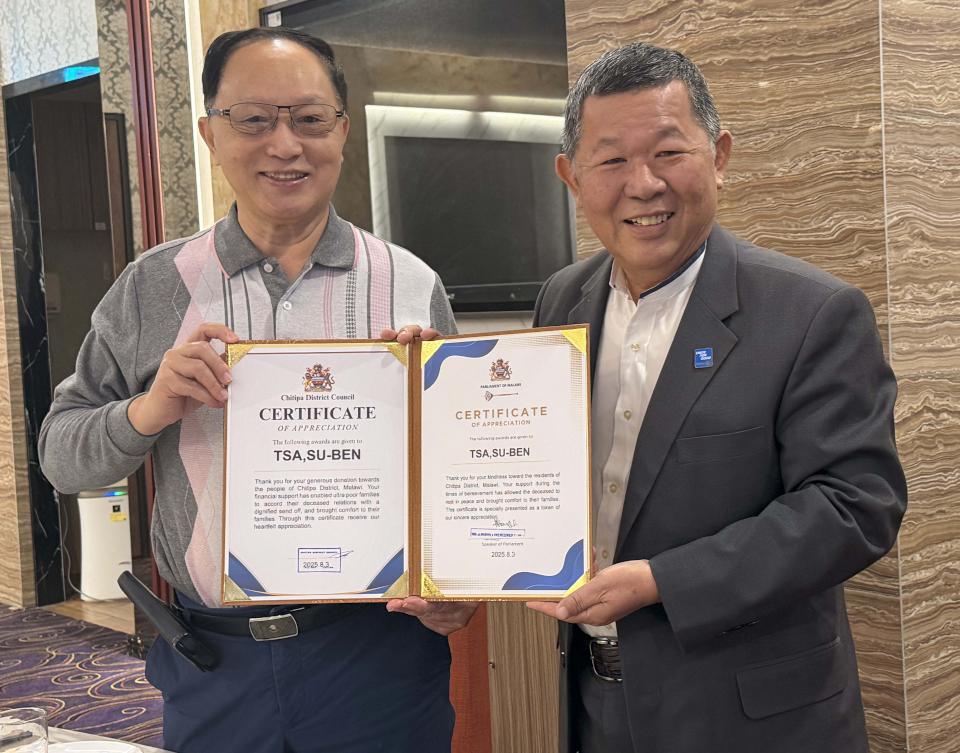 非洲馬拉威台灣商會名譽會長施鴻森(圖一右)投身鑿井、捐棺、種生態咖啡等公益事業深獲肯定,帶動台灣友人響應,國際白疤中心創辦人、台灣資深整形外科名醫曹賜斌(圖一左)2025年捐資賑濟馬拉威貧窮家庭喪葬費,2026年1月1日喜獲馬拉威國會感謝狀,曹賜斌期盼發揮拋磚引玉功能,傳遞愛心至世界角落。