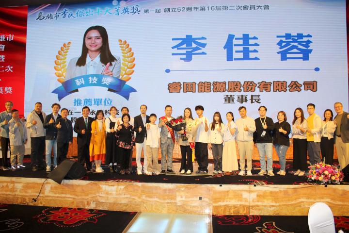 社團法人高市李氏宗親會3月8日舉行創立52週年暨第16屆第2次會員大會及第一屆李氏傑出十大菁英獎頒獎典禮,總統府國策顧問洪團樟、社會局長蔡宛芬、立委許智傑、賴瑞隆、柯志恩等人致詞迎賓,科技獎得主睿田能源負責人暨總經理李佳蓉(圖一左)說,企業長期投入淨零建築與再生能源應用,聚焦彩繪光電等建築整合立面光電技術,致力兼顧建築美學、耐候安全、防眩光、施工效率,協助公共場域與城市空間提前布局減碳轉型。