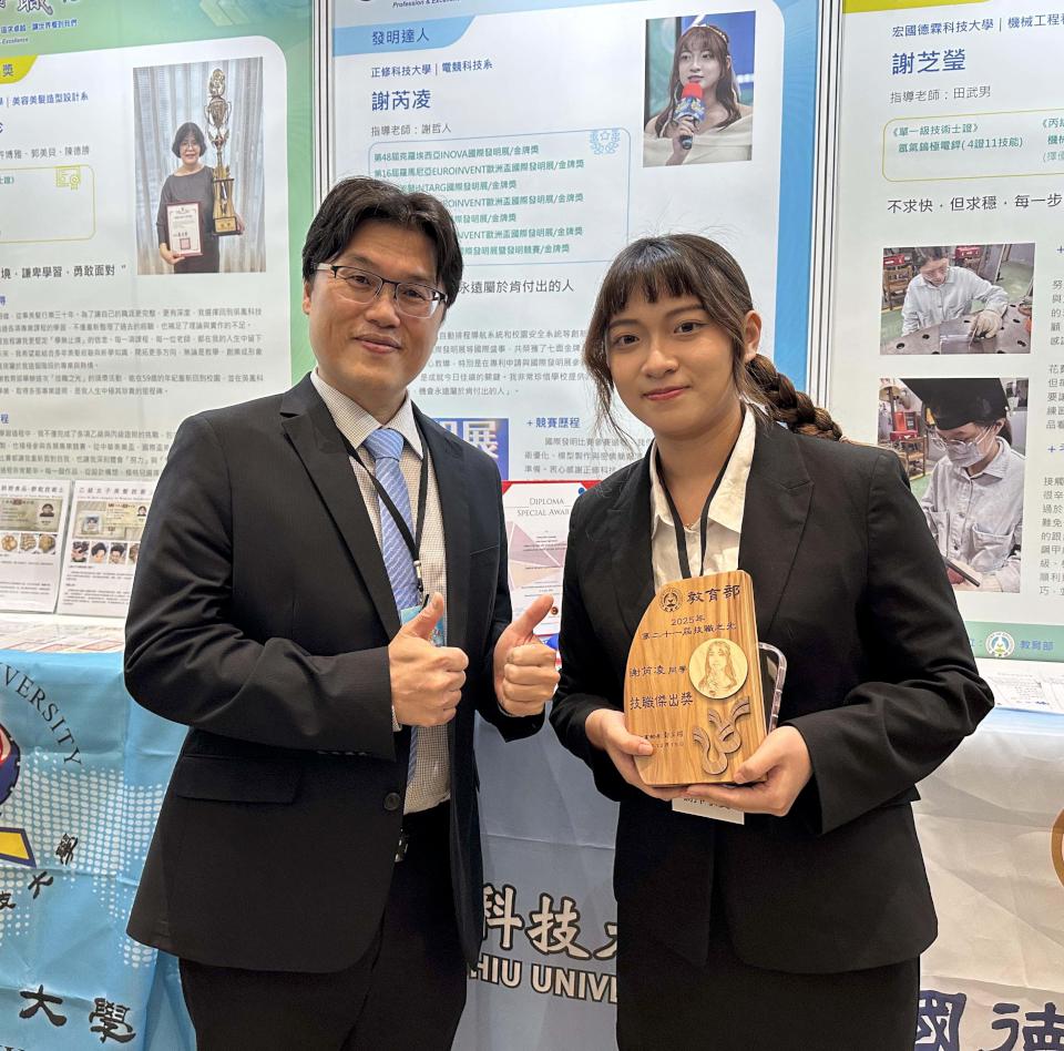 高市正修科技大學電競科技系主任謝哲人、教師李俊德指導大四生謝芮凌(圖一)「校園安全管理系統」囊括2025波蘭國際發明創新展金牌、波蘭特別獎、2025羅馬尼亞歐洲盃國際創新發明展金牌、美國特別獎、2025年第28屆俄羅斯莫斯科阿基米德國際發明展金牌、塞爾維亞特別獎,另「可自動依時排程之導航系統及方法」包辦波蘭國際發明展金牌及羅馬尼亞特別獎、羅馬尼亞歐洲盃金牌、俄羅斯莫斯科阿基米德國際發明展金牌與俄羅斯特別獎,榮膺教育部第21屆技職之光技職傑出獎發明達人,謝芮凌說,感謝學校提供完善學習資源及舞台,還有教師指導鼓勵,期勉學弟妹跳脫科系框架,勇敢嘗試,從生活發掘問題,同時請益教師及善用資源,轉化創意變身實用產品。圖/正修科大提供、文/高培德