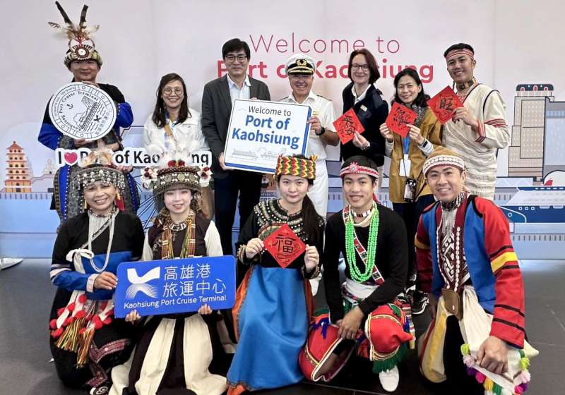 臺灣高雄港務1月16日噴水儀式並致贈紀念牌,並結合海洋局安排原住民舞蹈表演及春聯書法教學,喜迎114年首艘義大利籍愛達郵輪史黛拉號(AIDAstella)泊靠高雄港。