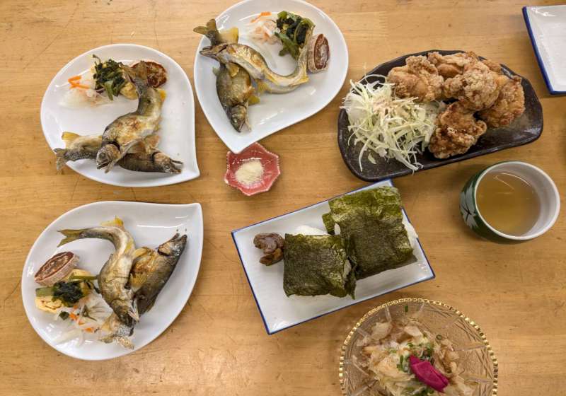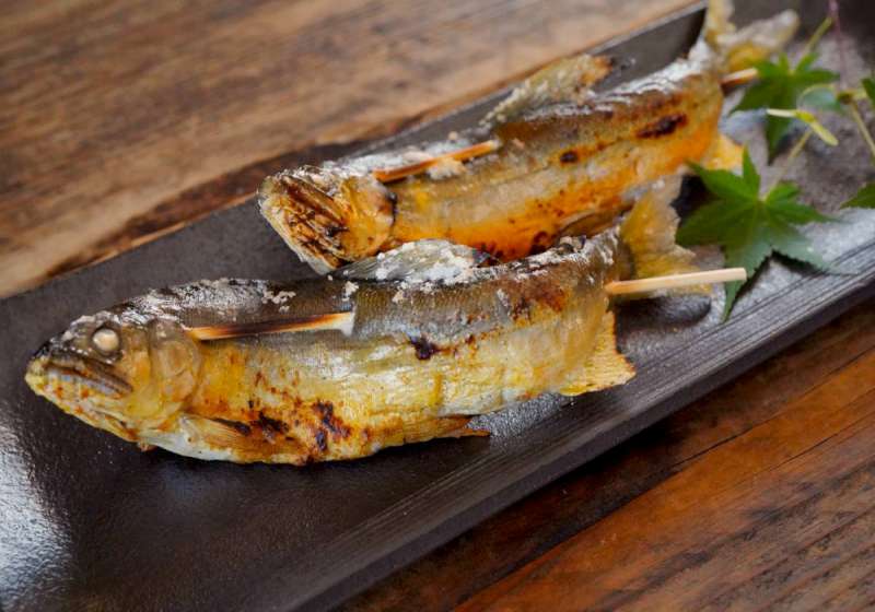 釣起來的香魚,會被製成多種料理:鹽烤、甘露煮、天婦羅,甚至還有以香魚熬煮的炊飯。