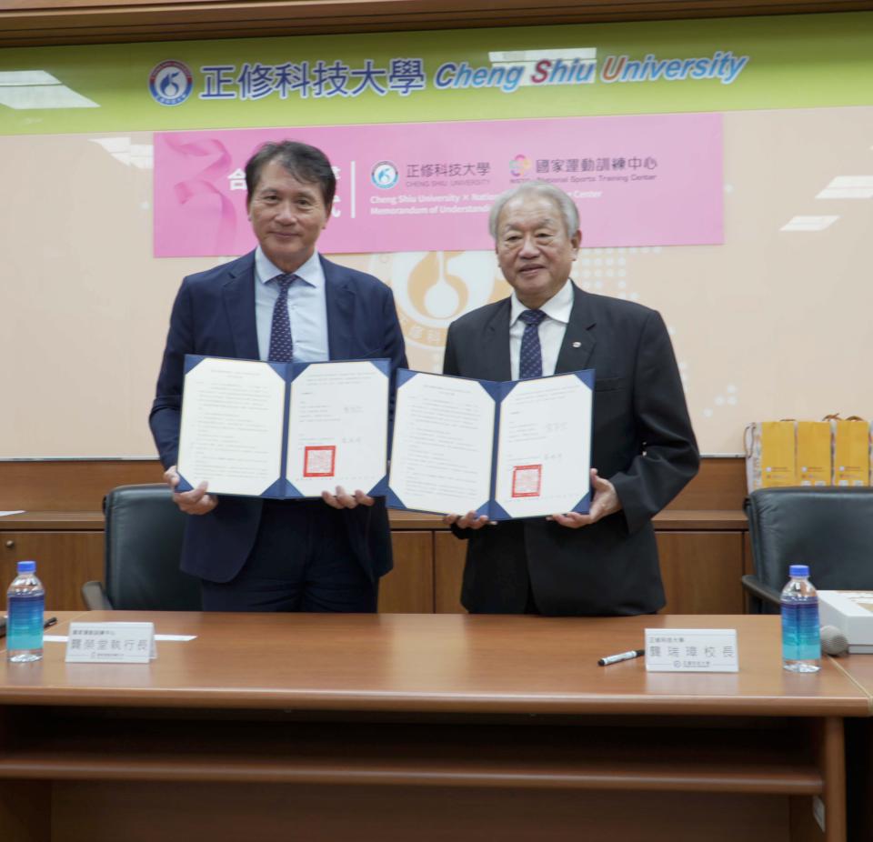 高市正修科技大學校長龔瑞璋 (圖一右)8月22日與國家運動訓練中心執行長龔榮堂(圖一左)簽署合作備忘錄(MOU),攜手合推體育相關歷史文物、檔案、藏品保存維護、文物典藏空間與專業規劃諮詢服務等,正修科大副校長黃柏文、主任李益成、李龍淵等人見證。