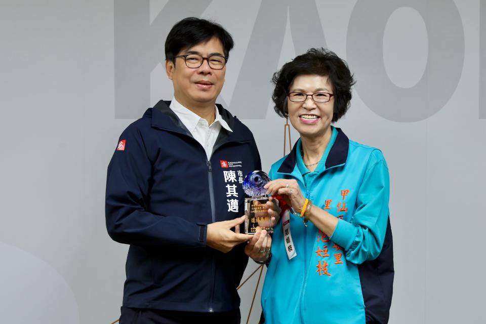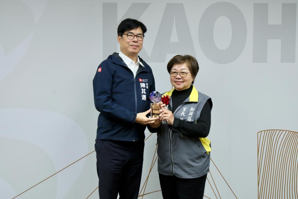 高雄市長陳其邁3月10日主持市政會議,會中頒贈114年內政部三等內政專業獎章20名里長琉璃獎座,其中三民區長明里里長林練丁汛期前清淤側溝,社區未傳淹水,甲仙區西安里里長范姮枝爭取梳子壩等防汛工程,降低下游積淹水風險114年強颱山陀兒、凱米過境,鼓山區朱榮俊、曾茂信、陳進興等里長整備沙包、巡視社區,災後一站式服務協助受災戶申請補助,六龜區新興里里長邱瑞明爭取市府天災農損補助,旗津區安順里里長莊武益帶軍鄰長及志工宣導落實巡、倒、清、刷防治登革熱,楠梓區秀昌里里長張明全建立疑似失智長者名冊,主動結合社會局力阻「孤立死」,大社區三奶里里長許丁春爭取新建集會所及佈建社區關懷照顧據點,左營區尾西里里長郭錦彬、城南里里長謝金得自掏腰包、媒合慈善資源,陪伴急難家庭紓困,前鎮區瑞北里里長陳眞玟爭取活化閒置空地變身公有停車場。圖/民政局提供、文/高培德