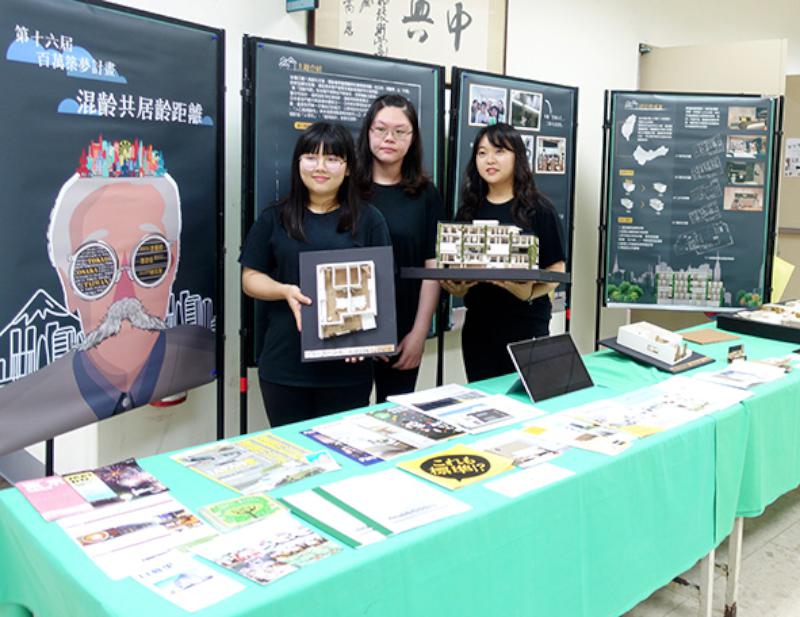 室內設計系李政佳與李嘉卿、社會工作學士學位學程韓筑雅跨域提案《混齡共居齡距離》計畫(圖一),三人參展日本大阪主宅博覽會、家飾店、東京聖蹟住宅、Panasonic生活展示館、森美術館日本建築展等,運用混齡共居模式打造友善無障礙空間,解決獨居衍生問題,同時緩解青年購屋資金不足窘境。