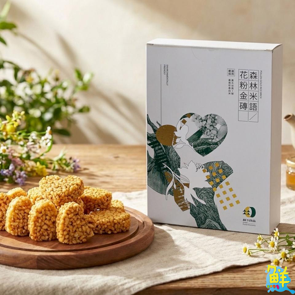 在年節零食的選擇上,「良品市場」特別推出森林米語花粉金磚,選用阿里山林下養蜂採集的森林蜂花粉,並結合嘉義大學研發的「嘉大台南1號」節水米製成,是市面上少見的花粉米餅,酥脆口感中帶有淡淡蜜香與花粉風味,展現森林食材與農業創新的結合。