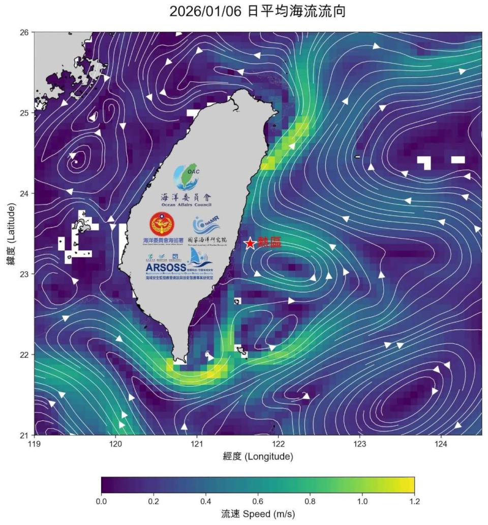 軍F16戰機上尉飛官辛柏毅1月6日夜間訓練行經花蓮縣豐濱鄉東方海域,疑因迷向墜機失聯,搜救任務衍生海流問題引發熱議,海洋委員會國家海洋研究院官方社群1月15日貼文表示,東台灣海域受多尺部動力影響,非外傳北流,國海院透過海巡署海難測流浮標(SLDMB)漂流浮標與歐盟哥白尼海洋服務資料雙重實證,強調專業搜救須納入管理不確定性,建構兼具容錯率搜索動態模型。