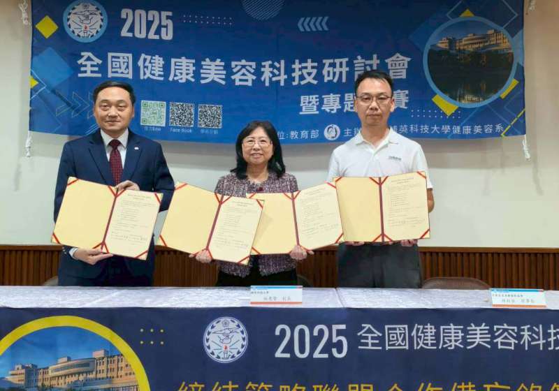 高市輔英科技大學健康美容系2025全國健康美容科技研討會暨專題競賽,規劃專題演講、海報論文發表、學生專題競賽等,會中攜手中華長生美學再生醫學會及中華美容美睫發展協會簽約締結策略聯盟,協助校方通過皮膚管理從業人員技能認證檢定試場認證,輔英科大校長林惠賢說,未來數位科技、人文研究與再生醫學、美容科技等領域人才扮演關鍵角色,學校長期推動跨域整合教育,鼓勵學生創新思維、學習研究,鏈結產業需求。