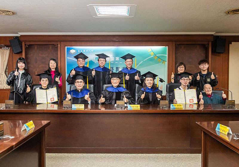農曆年前,嘉南藥理大學迎來金蛇年第一樁喜事,在1月23日為成績優異提前畢業的職業安全衛生系何芮安及黃慧君兩位同學,舉辦了一場溫馨隆重的微型畢業典禮。校長錢紀銘親自為二位學生撥穗並頒發畢業證書,二位同學親屬與多位職安系師長也親臨現場,為這兩位優秀學子送上滿滿祝福。