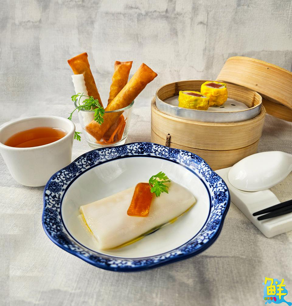 ▲三款限定點心,將烏金的美味發揮得淋漓盡致,包括「烏魚子春捲」、「烏金海皇燒賣」、「金乳烏魚子腸粉」