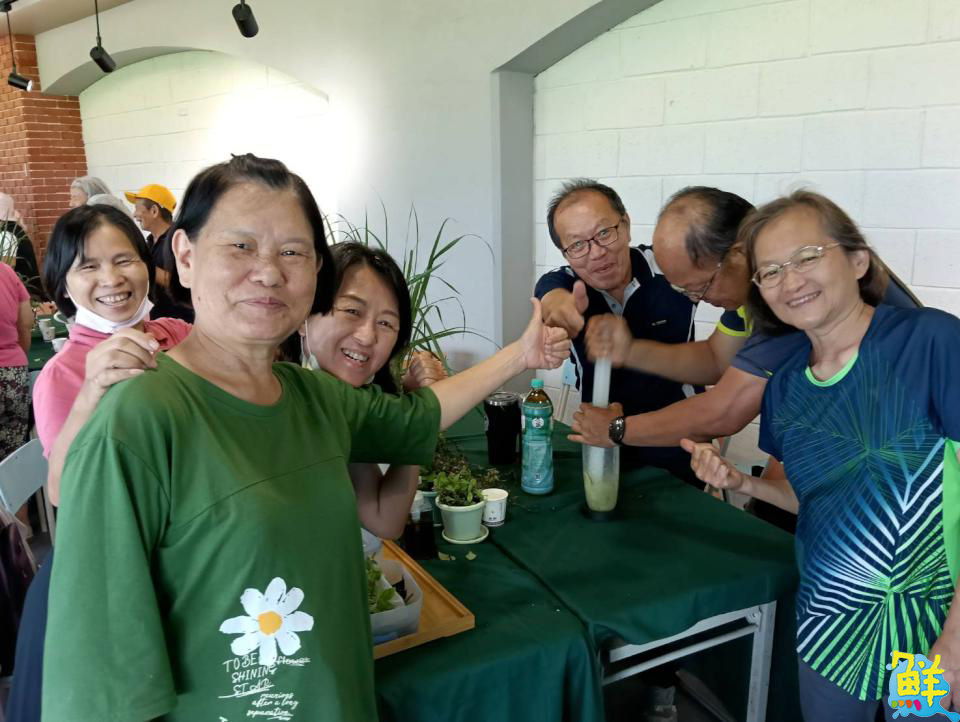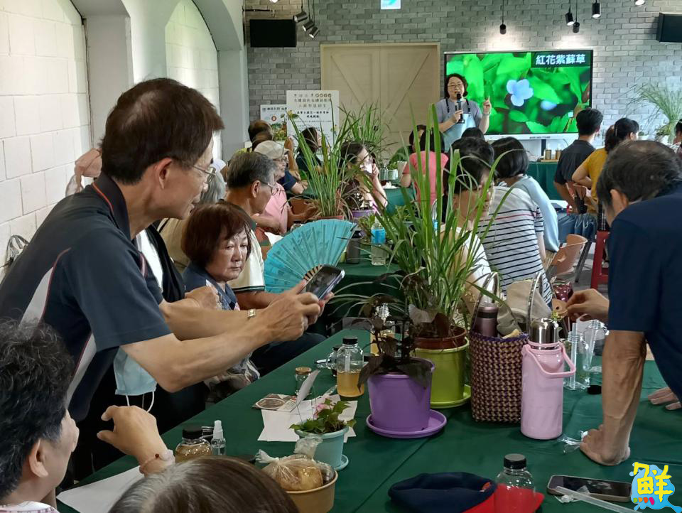 ▲美濃客家文物館「七感療癒食農體驗工作坊」,民眾正熱烈的爆打香草療癒飲品