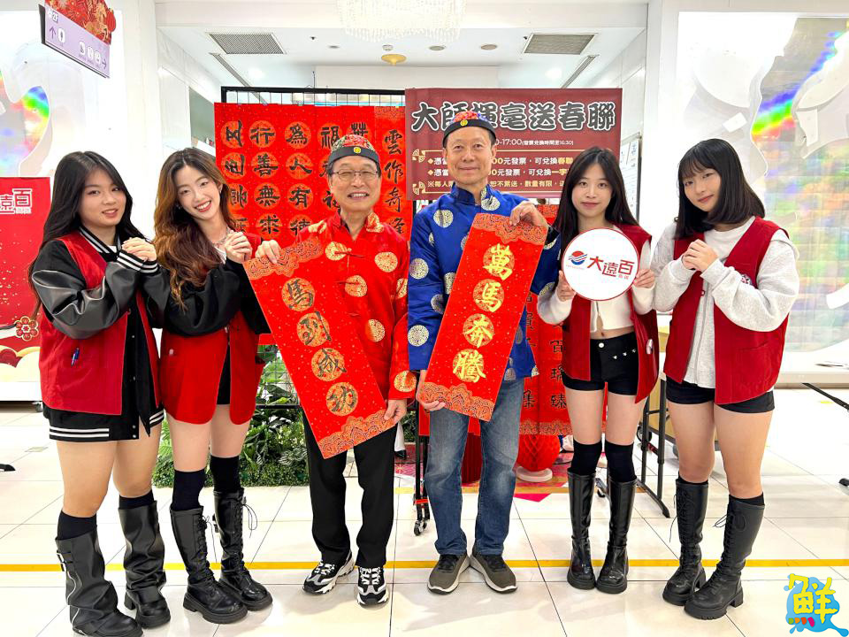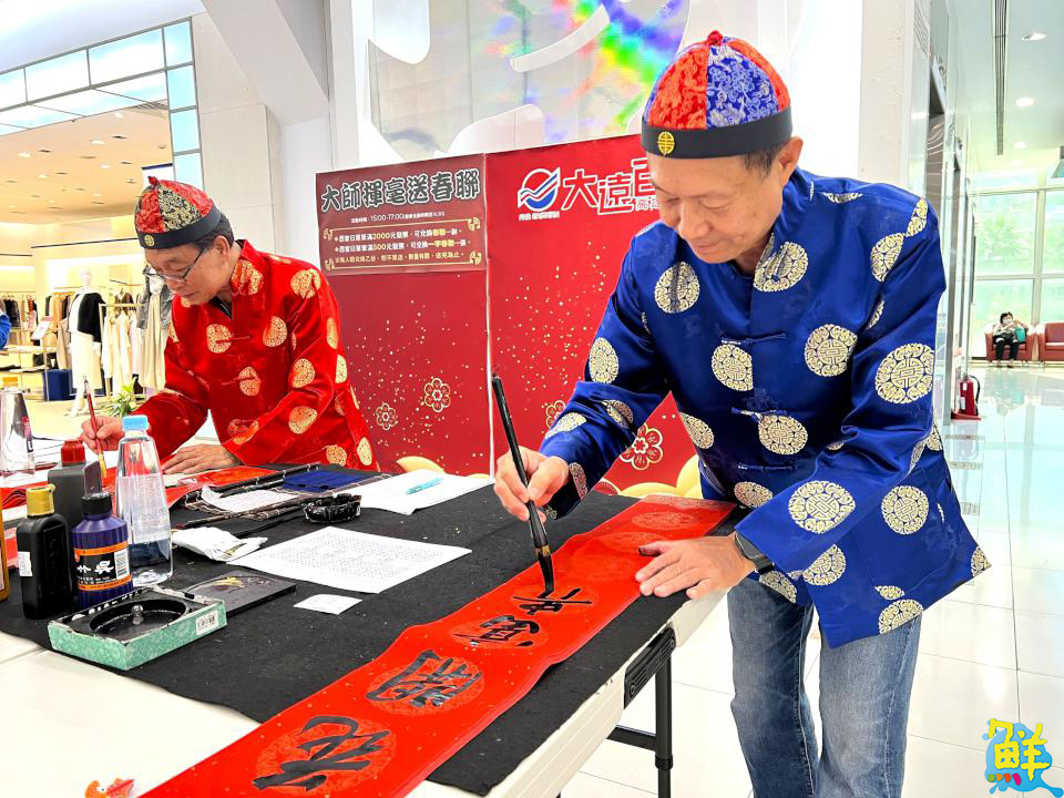 ▲高雄大遠百日前特別於過年前邀請擁有二十年書法經驗的專業書法老師-梁安華及王東雄蒞臨揮毫,民眾憑消費滿額發票即可至二樓中庭免費索取
