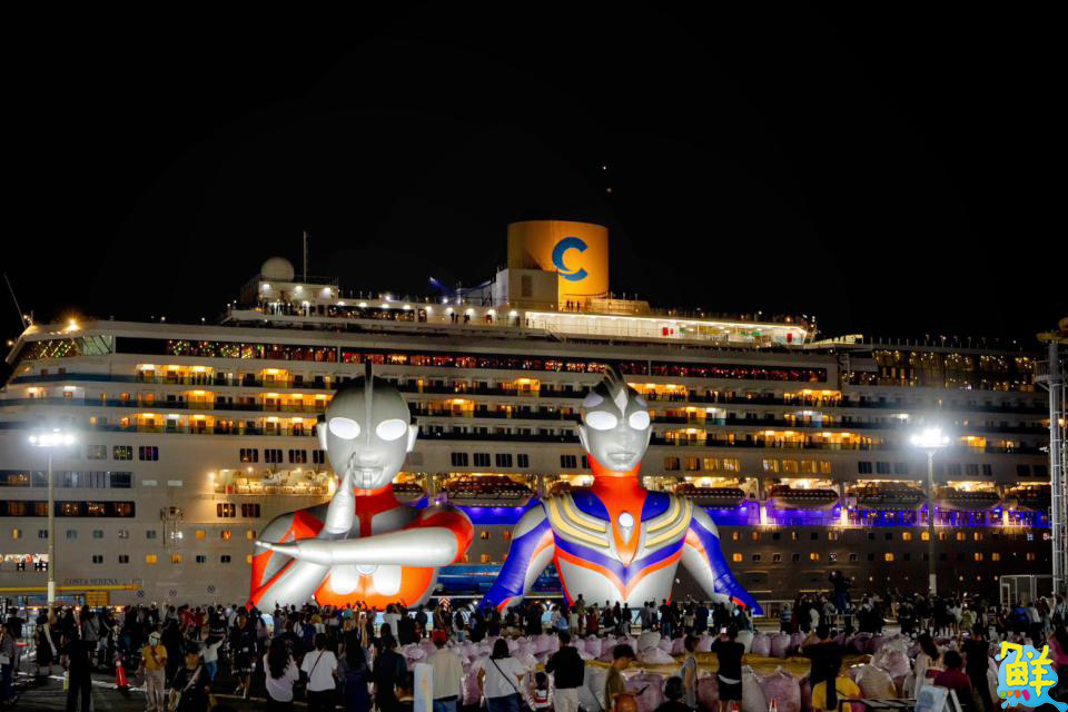 ▲初代超人力霸王、超人力霸王迪卡於17號碼頭與歌詩達郵輪合影。