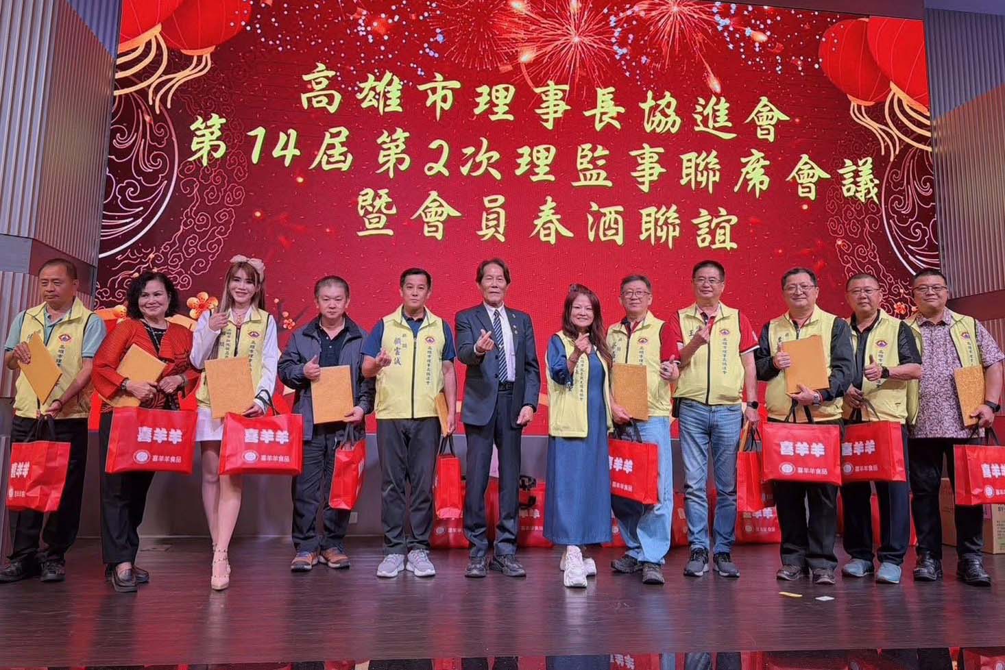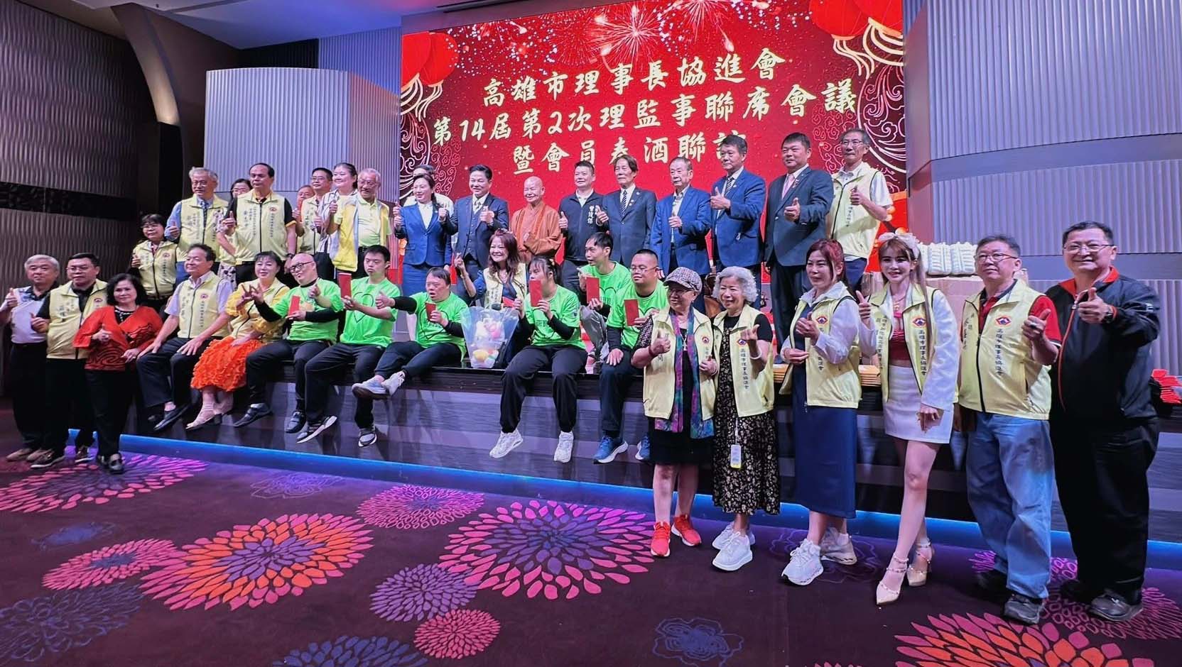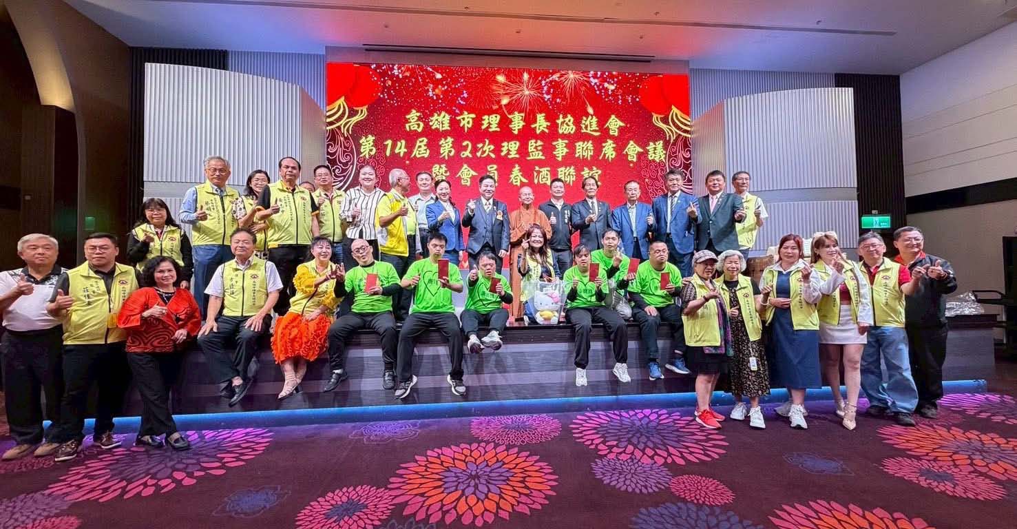高市理事長協進會2月25日舉行第14屆2次理監事聯席會議及會員春酒聯誼,理事長鍾瑩螢主持,會議比照國際模式致敬第6屆賴政治、第8屆沈塗津、第9屆黃明富、第10屆趙維君、第11屆鍾佳亨、第13屆馬寶琳等歷屆理事長並追思已故先進,高市腦性麻痺協會天公仔太鼓、李一映、許沁沁花藝、高市福澤慈善會理事長鍾佳亨歌唱等接力炒熱氣氛,屏東麟洛顯法寺觀慧法師率領國際法師吉祥圓爾、華梵大學校董琉璃光大師父、日賢法師等人宗教祈福,鍾瑩螢說,持續招募會務菁英,健全行政組織,傳承愛心與服務精神。.高市福澤慈善會理事長鍾佳亨,立委許智傑、柯志恩、高市理事長協進會榮譽理事長周承忠、徐仲志、高市議會副議長曾俊傑、高市議員、社團法人高雄縣慈心慈善會榮譽理事長李雅靜、高市新聞從業聯盟總會理事長張永漢、華梵大學東方人文思想研究所所學會長李曜延、財務理事蔡明宗、屏東縣理事長發展協會理事長朱浩昌、鍾瑩螢先生陳欣懋等人獻上祝福。