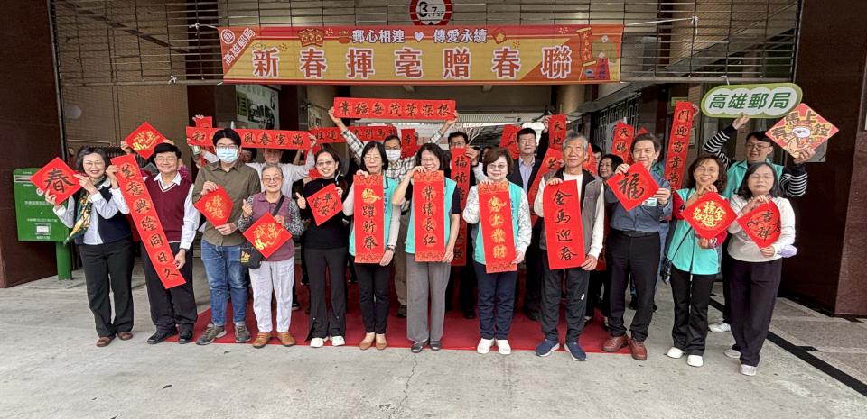 高雄郵局邀4書法名家揮毫贈春聯 同步宣導電子支付連結郵政儲戶 2026/01/30 高培德 180中華郵政高雄郵局1月30日舉行「郵心相連・傳愛永續-新春揮毫贈春聯」社區活動, 邀請王苡蘋、簡佑臣、簡順能、林端姮等4名書法名家現場揮毫贈限量春聯,同步設攤宣導電子支付連結郵政儲金帳戶,高雄郵局局長尤素珍說,郵局提供金融、郵務服務,成為社區好厝邊,新春揮毫傳遞關懷與祝福,落實郵心相連、傳愛永續理念。圖/高雄郵局提供、文/高培德 #高雄捷運報 #高雄在地媒體 #高雄新聞 #鮮新聞 #高雄新聞網 #高雄郵局