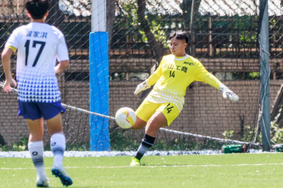 高三生賴宛貞結束學測重返球隊,成為同儕精神支柱,錄取中山醫學大學。U-17代表隊隊長伍彥諭精準預測、快速補位,搭配守門員孫芸芸反應敏捷、指揮沉穩,多次化解對手攻勢,助攻團隊晉級。圖/中山工商提供、文/高培德