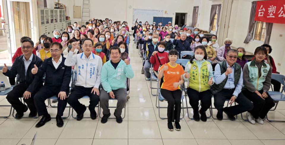 台塑企業仁武廠2月3日在仁武區文武社區活動中心舉行社區健康促進講座與健康操活動,邀請高雄長庚醫院營養師吳靜宜宣導營養衛教、體適能教師黃玉貞「健康動一動 」簡易毛巾操,仁武區文武里里長蔣明印號召逾百名社區民眾共襄盛舉,台塑仁武廠資深經理楊志成(圖一前排左二)舉例小病初癒,免疫力下降,籲請鄉親安心吃、別忘運動,健康長壽。
