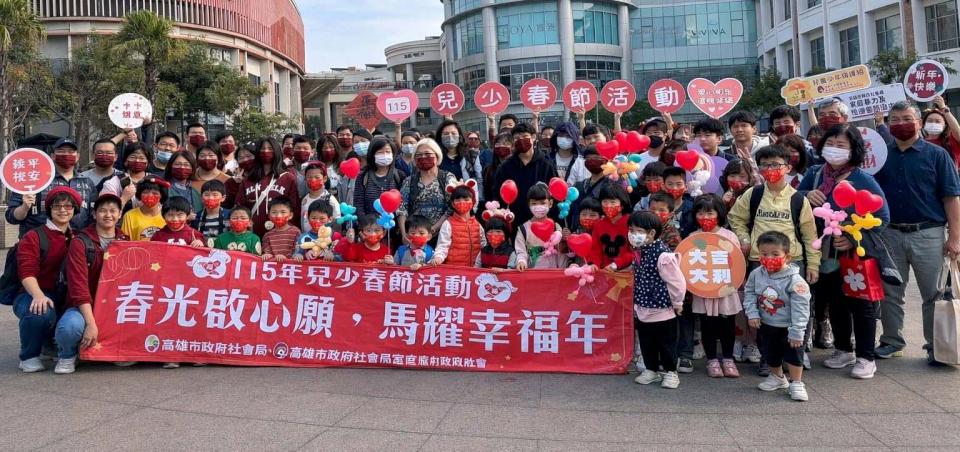高市社會局2月4日邀監護兒少及照顧者前進前鎮區知名樂園,暢玩放肆跑跳、卡丁車及遊樂設施,社會局長蔡宛芬也與大小朋友共進午餐,並致贈馬年開運紅包及禮盒,提前歡度春節。