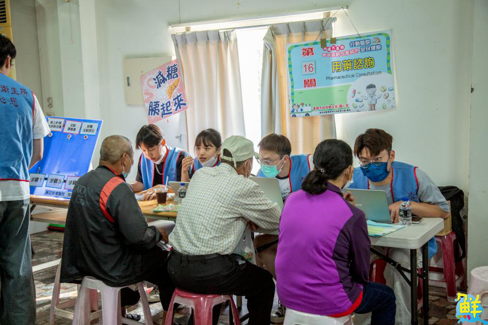 接著藥學系師生再度前往大內環湖社區,以「小班制」方式和社區長輩面對面進行用藥安全宣導,內容包括認識常見藥品的正確使用方式、如何避免重複用藥等。參與宣導活動的陳同學說,一開始擔心講解內容長輩無法理解,但實際互動下來,發現阿公與阿嬤們都很親切,也很願意分享自己平常吃藥的情況,甚至還反過來問很多問題,讓他對自己專業知識更有信心,也感受到藥事溝通的重要性。