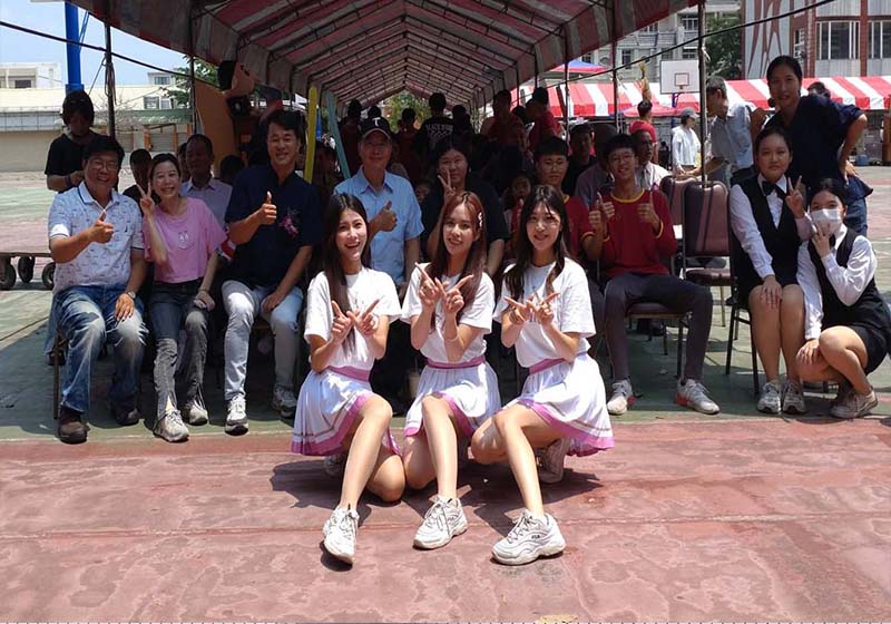 雲林縣私立大成商工5月4日舉行孝親園遊會、美容科畢業展、校友會大孝獎頒獎暨科大博覽會等活動,其中校友會評選雲林縣13所國中獲頒大孝獎,大成商工2名學生勝出,台鋼科大副校長張宏宇(圖一左一)、主秘葉怡君(圖一右一)、大成商工校長陳瑞元、總務主任王文毅(圖一左二)、實習主任陳正勳(圖一右二)、雲林縣議會議長黃凱、虎尾鎮長林嘉弘等人見證喜悅,台鋼雄鷹Wing Stars啦啦隊受邀表演熱舞炒熱氣氛,張宏宇說,期待全隊12名成員下次再訪大成商工獻藝,大成商工2月15日與台鋼科大簽約結盟,大成商工經濟弱勢學生選讀台鋼科大,可享有四年免學雜費、住宿費,還能申請助學金,畢業可望獲聘台鋼集團保證就業。圖/台鋼科大提供、文/高培德