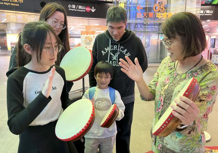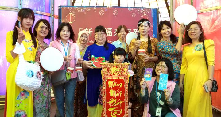 高市社會局攜手財團法人台灣賽珍珠社會福利基金會合辦2026年『「新」福來報到』迎新春活動2月7日在高雄捷運美麗島站光之穹頂大廳舉行,吸引馬來西亞、泰國、菲律賓、印尼、緬甸等地新住民、移工,還有日本、歐美、台灣等地遊客參與體驗書寫春聯、紅包、馬來西亞手鼓、越南魚蝦骰子等互動遊戲。