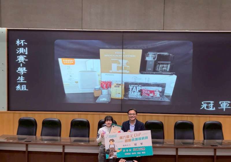 奪下冠軍的陳筑婷,從大一入學起便展現對咖啡的濃厚興趣,在食品系特有的「試量產級」加工設備的咖啡專業教室中,修讀了「咖啡技術實務」、「基礎嗅味覺開發」及「食品感官品評」等課程,讓她學會以科學的方式拆解風味,為了備戰,她每週堅持練習,不斷調整在三杯咖啡間的差異分析節奏,終於建立起屬於自己的判讀系統。