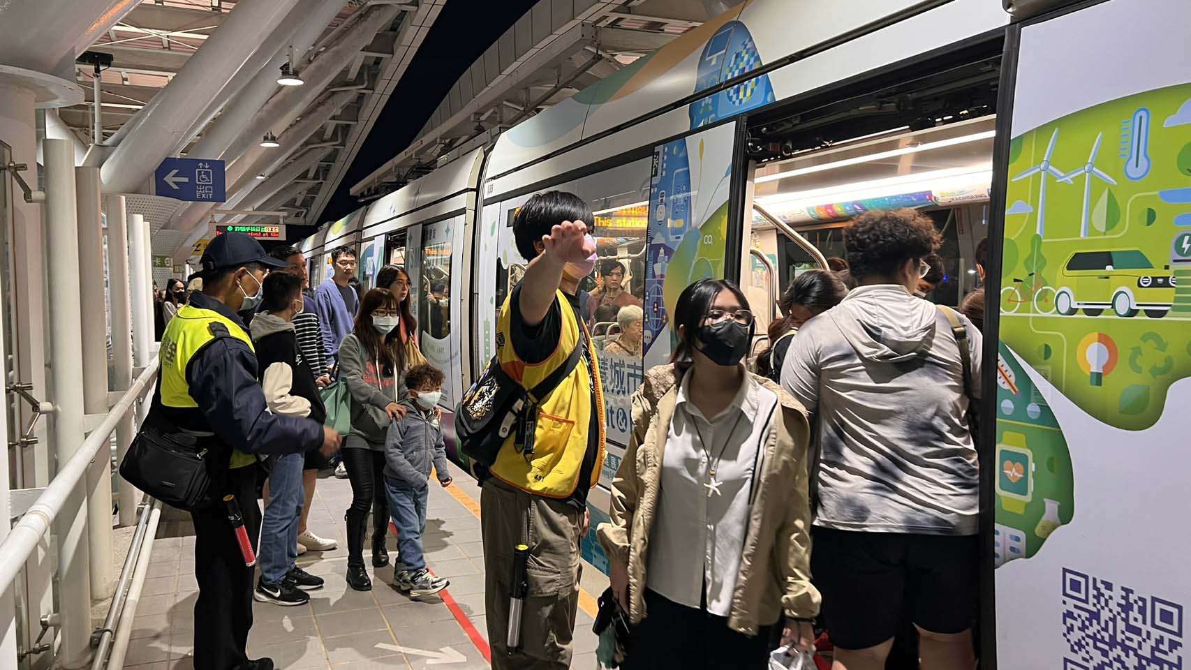 捷運局與高雄捷運增派人力進駐乘車熱點加強疏運,嘉惠長者、行動不便及嬰兒推車等對象。捷運局長吳嘉昌說,感謝輕軌乘客、高捷團隊、員警、志工辛勞付出,鼓勵民眾善用高捷APP,即時查詢列車動態及車廂擁擠度等資訊。圖/捷運局提供、文/高培德