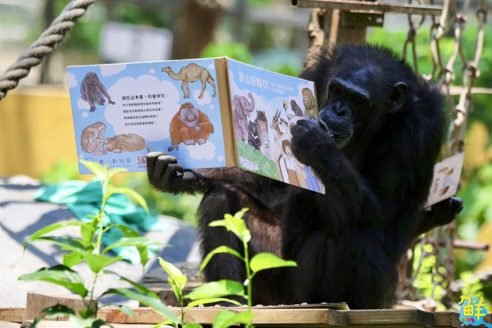 黑猩猩也愛閱讀!壽山動物園推「藏食紙書」萌翻世界閱讀日