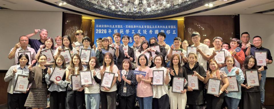 園管局高屏分局下轄3科技產業園區 45名中華民國勞工、10國際移工獲表揚