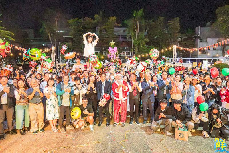 ▲嘉南藥理大學「粉亮甲子 歡度聖誕」點燈儀式呼應學校即將邁向一甲子的輝煌歷史