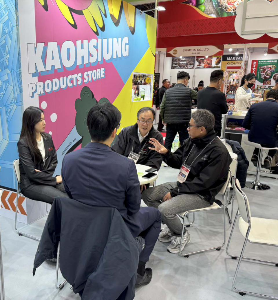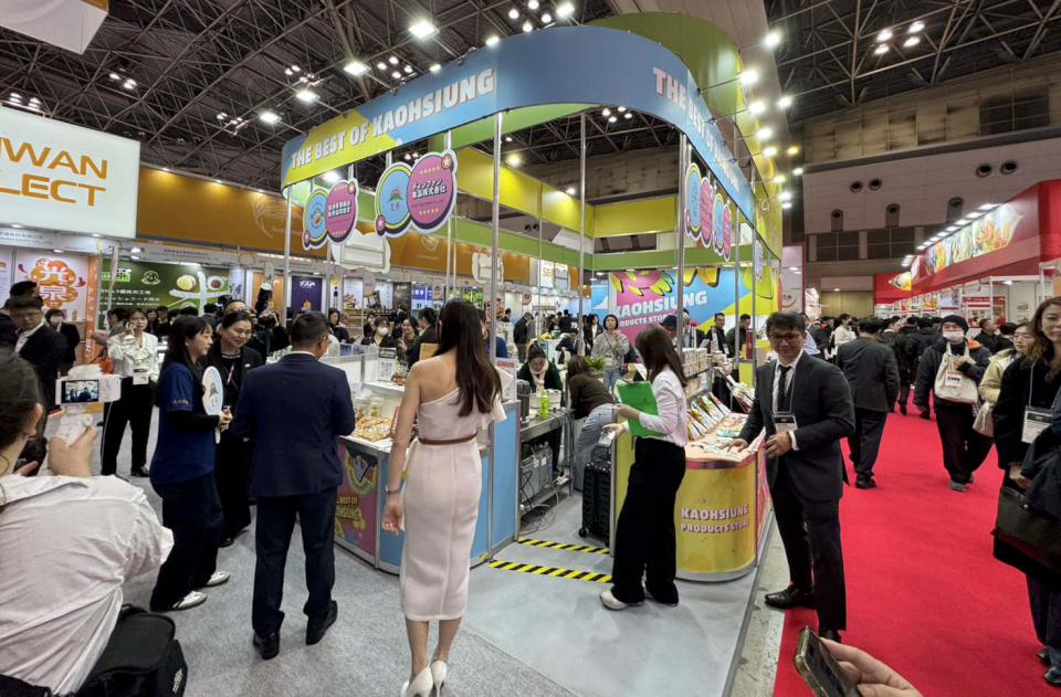 高雄物產館結合產品展售、試吃體驗及商務媒合洽談,首日吸引多家日本通路商及進口業者駐足,農業局表示,114年參展外銷訂單逾3億5600萬元。圖/農業局提供、文/高培德