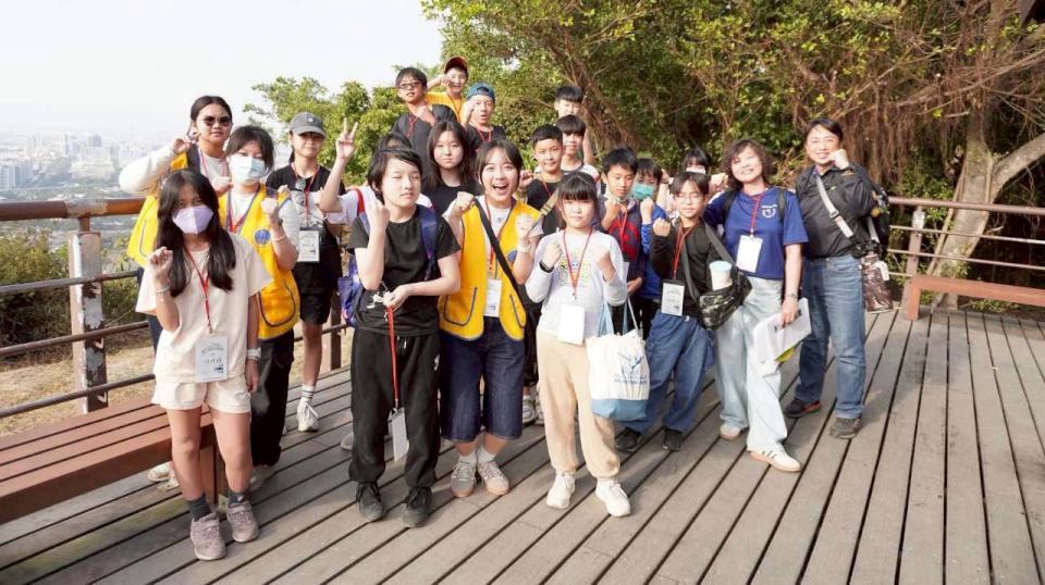 高市左營區立德國中攜手文藻外語大學1月27、28日合辦寒假雙語AI營隊,邀請左營區屏山國小主任吳峯森帶路國中及國小五六年級學生攀登半屏山,並介紹板塊移動造就特殊地形及沿線植物生態,結合文藻外大外文系教師廖俊芳、林艾依、莊凱婷領軍小螺釘大學社會責任計畫(USR)團隊同步英文口譯,並指導學員製作雙語簡報,強化外語應用能力,增添營隊樂趣。
