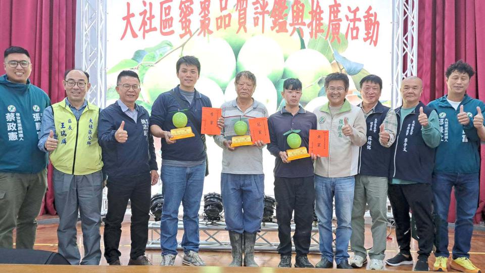 大社區農會總幹事謝清標說,當地蜜棗種植面積約80公頃,氣候及土壤條件優越,搭配溫網室及友善草生栽培,產出蜜棗安全健康、品質穩定,期能透過評鑑優質蜜棗,強化品牌形象及能見度,同時為產季造勢加溫,未來續結合拓展通路、展售活動、食農教育等方式,拓展農特產市場商機,增進農友收益。