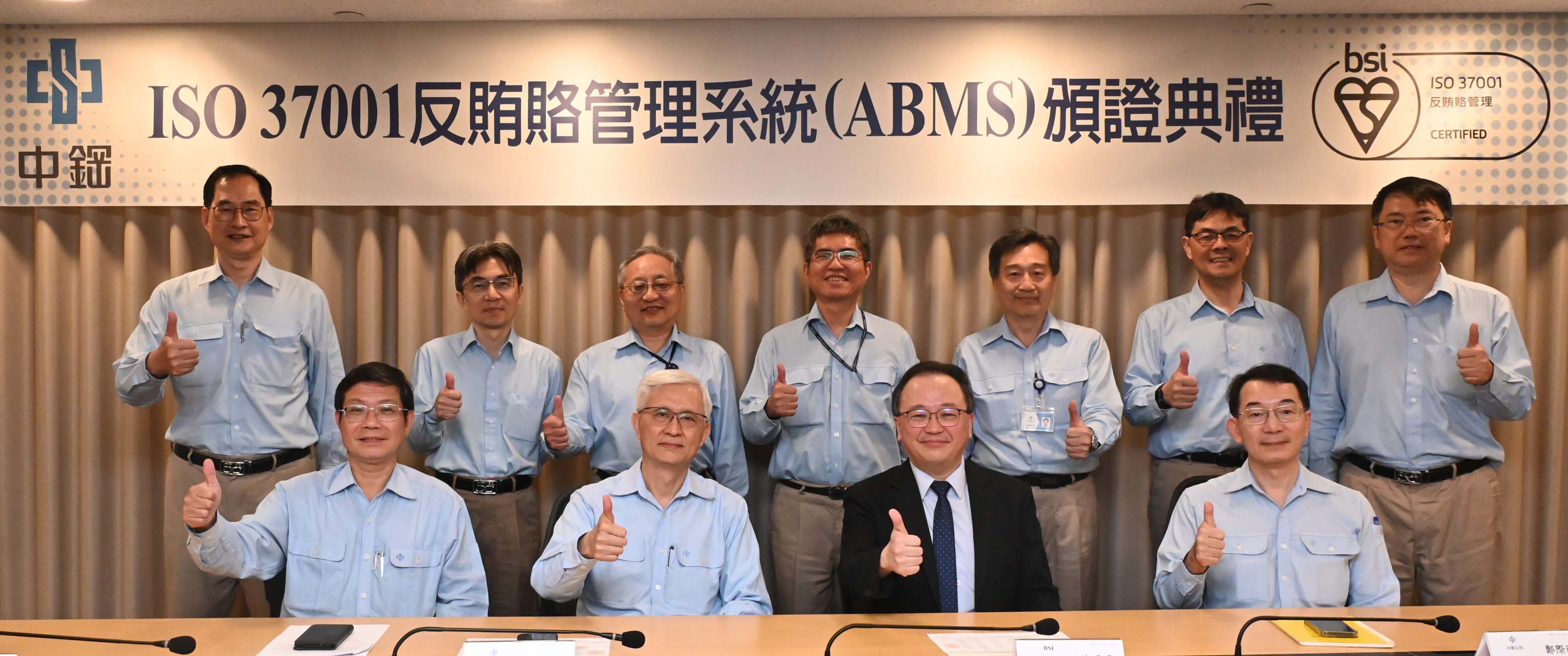 中鋼2024年第四季導入ISO 37001反賄賂管理系統(Anti-Bribery Management Systems, ABMS),2025年第四季通過英國標準協會(BSI)兩階段審查,董事長黃建智(圖一左)2026年2月23日代表從東北亞區董事總經理謝君豪(圖一右)手中接過證書,黃建智說,國際企業追求誠信廉潔,根據世界經濟論壇(World Economic Forum)及相關機構研究,賄賂與貪腐增加企業營運成本約10%,中鋼跨部門導入反賄管理系統,建立風險評估、盡職調查與管控程序等機制,確認管理程序符合ISO 37001標準,並逐條檢視優化制度,落實誠信經營。