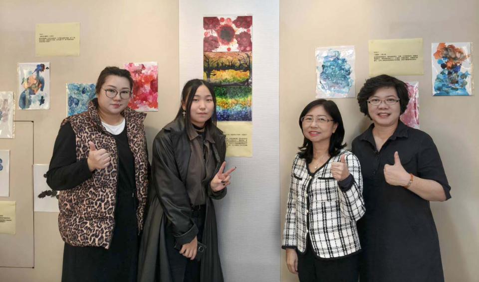 陳采秀說,酒精墨水畫屬流體藝術,利用酒精相容、流動與快乾等特性,在專用紙倒上顏料自由暈染、擴散及凝結,型塑獨一無二線條與紋理,感謝教育部性別平等教育課程教學開發及推動策略研究計畫及學校教師發展特色研發計畫經費支持,學生費時3週創作。