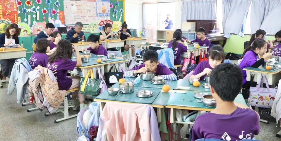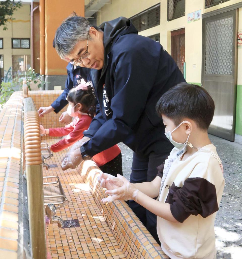 李懷仁也觀摩各班食物分類、蛋白質來源、蔬果重要等飲食教育及落實濕、搓、沖、捧、擦等正確洗手步驟,學生透過平板即時回饋系統問答,互動氣氛熱絡。