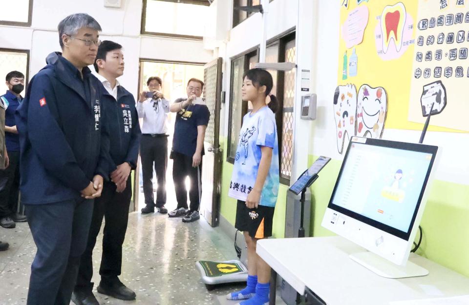 瑞興國小校長劉熾慧簡報時說,學校透過數位健康管理與飲食教育等,強化學生餐食及健康知能,也建置智慧掛號機、身高體重計等設備,力推健康風險管理。