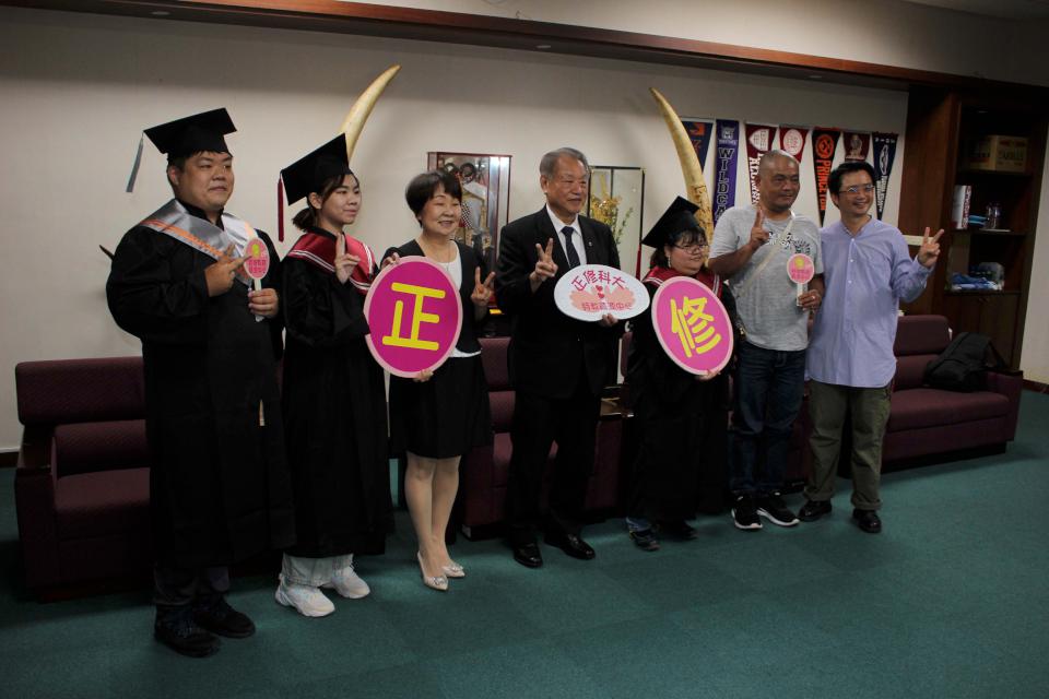 高市正修科技大學幼兒保育系侯佳佑、化妝品與時尚彩妝系吳慈芳、資訊管理系蔡旭棠三名應屆畢業生克服身體界線,秉持堅定信念,努力不懈,開創專屬精彩人生,校長龔瑞璋5月26日頒贈學習楷模獎牌嘉勉,另學校特殊教育資源中心龍舟隊正式成軍,龔瑞璋授旗龍舟隊隊長夏子頣祝福旗開得勝,特教中心主任吳秉衛等人歡喜見證。