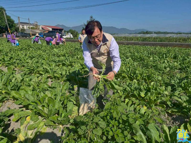 ▲劉雅魁處長親手採收白玉蘿蔔,與志工們一同投入公益行動,感受活動帶來的溫暖與關懷。