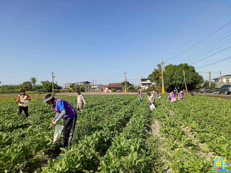 ▲在廣闊農田中志工們專注採收白玉蘿蔔,展現團隊合作與向心力。