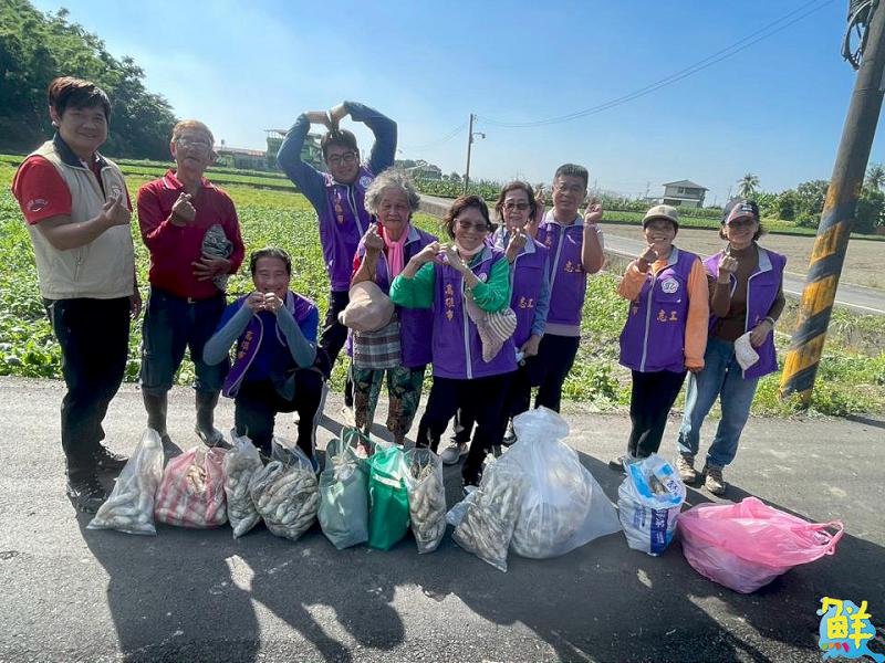 ▲志工們整理辛勤採收的白玉蘿蔔,開心分享勞動成果,展現團隊合作的溫暖氛圍。