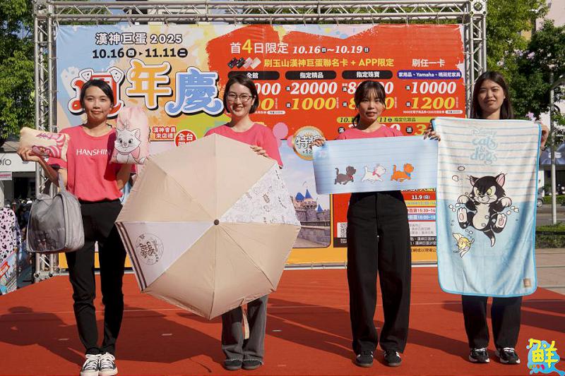 本次漢神巨蛋週年慶另一大話題焦點,便是攜手迪士尼授權推出全台限定的「cats & dogs 毛孩萌寵派對」會員卡友來店禮,包含出遊派對旅行三件組、喵汪隨行晴雨摺疊傘、萌寵辦公好友滑鼠墊,以及懶懶窩毛絨絨午睡毯,可愛與實用兼具,預計將掀起一波兌換熱潮。此外10/20(一)~11/30(日)還有限定加價預購會,特別推出「小姐與流氓」飲料提袋(149元)與「妙妙貓」尾巴吊飾(249元),將萌寵全部帶在身邊。