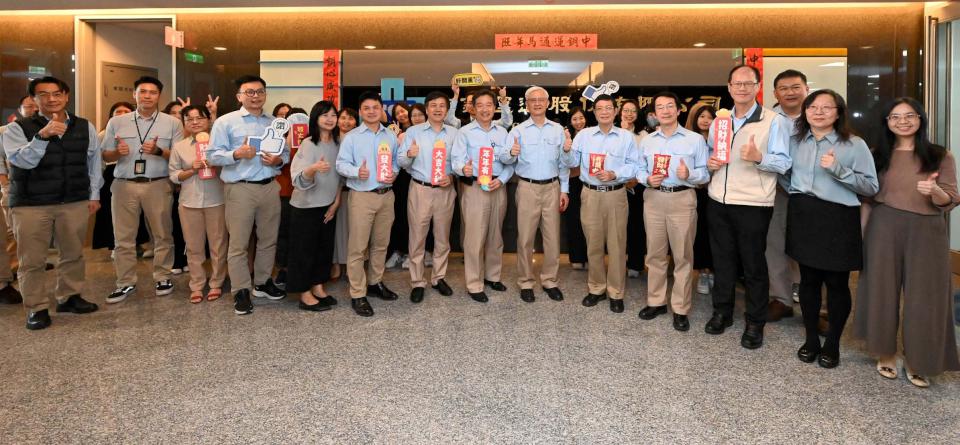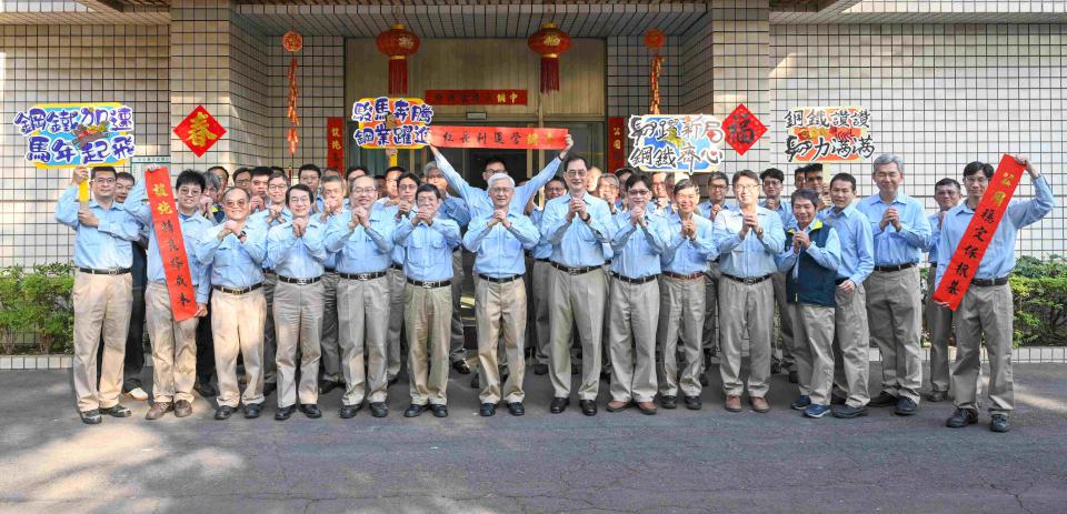 中鋼董事長黃建智(圖一前排右一)、總經理陳守道及執行副總鄭際昭2月13日現身小港廠區、工會及集團總部大樓向同仁拜早年,祈願「策馬揚鞭開新運,一馬當先創佳績」,也慰勉春節連假執勤人員辛勞,並要求落實工安及環保工作,並提醒返鄉探親及出遊留意交通安全及飲食均衡。