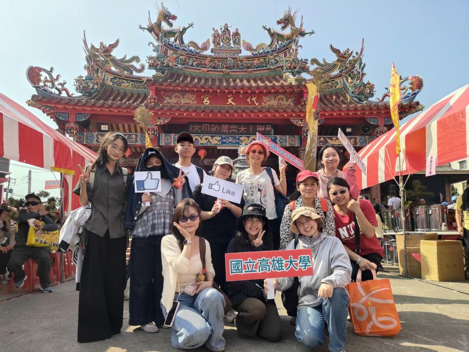 國立高雄大學語文中心主任陳志文、華語老師蔡佩吟4月20日領軍10餘名外籍生跟隨大甲鎮瀾宮媽祖繞境嘉義新港,體驗鑽轎腳,感受全台瘋媽祖熱度,認識台灣宗教文化,陳志文說,華語教師取材台灣宗教文化設計結合語言學習及體驗課程,回應高等教育朝國際化發展趨勢。