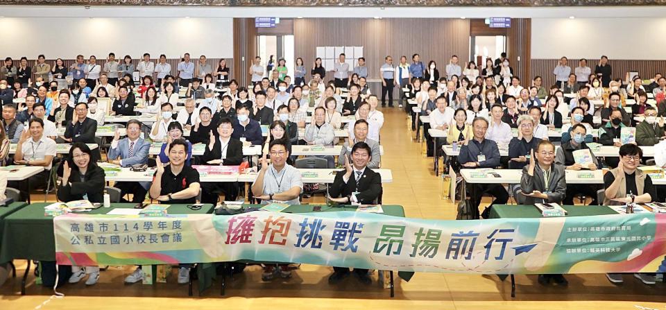 高市公私立國民小學114學年度校長聯席會議2月26日在輔英科技大學舉行,主題定為「擁抱挑戰、昂揚前行」,聚焦校園社會情緒學習與友善校園職場,逾200名校長交流經驗與分享專題,擘劃未來教育發展藍圖,輔英科大校長林爵士致詞迎賓,教育局長吳立森表揚教育部校長領導卓越獎高市鳥松區大華國小莊明廣、教育部教學卓越獎鳳山區中正國小、新甲國小等教學卓越與辦學績優學校,肯定各校辦學成果與校長用心領導。